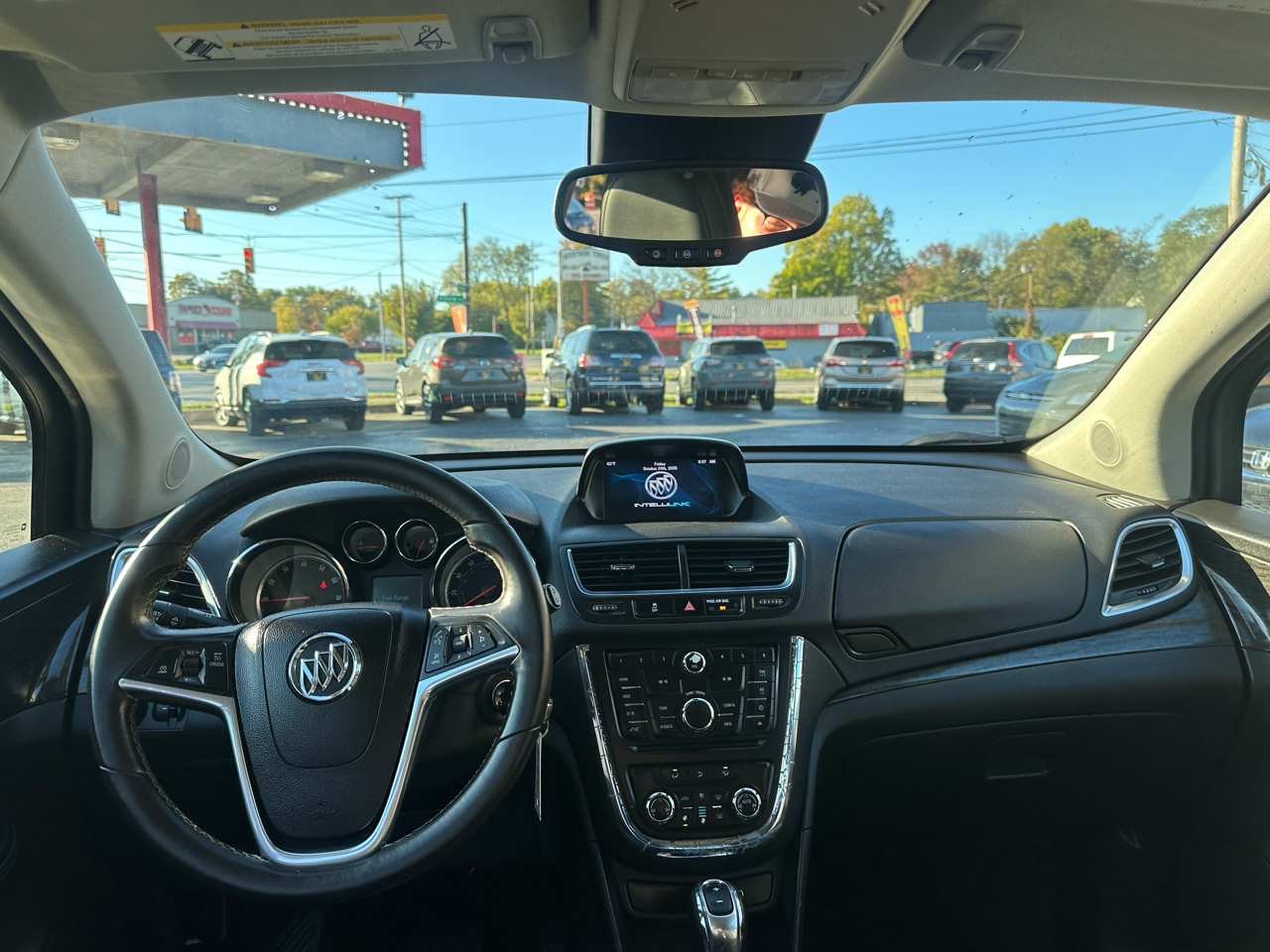 Speaking of safety, a Carfax report is available for this car, so you can buy with confidence knowing its history. The sleek exterior features halogen headlights with a blue translucent ring and stylish fog lamps, making this Buick Encore stand out from the crowd. And with the 18" all-season tires and rear exit exhaust system, this car not only looks great but drives like a dream.
