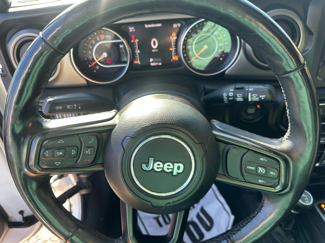 Step inside the spacious cabin and enjoy the comfort of the 60-40 Folding Split-Bench Front Facing Fold Forward Rear Seat upholstered in durable cloth. The Manual Tilt/Telescoping Steering Column allows you to find the perfect driving position, while the Cruise Control with Steering Wheel Controls makes long drives a breeze. And with the Proximity Key for Push Button Start Only, you can start your Jeep with just the push of a button.