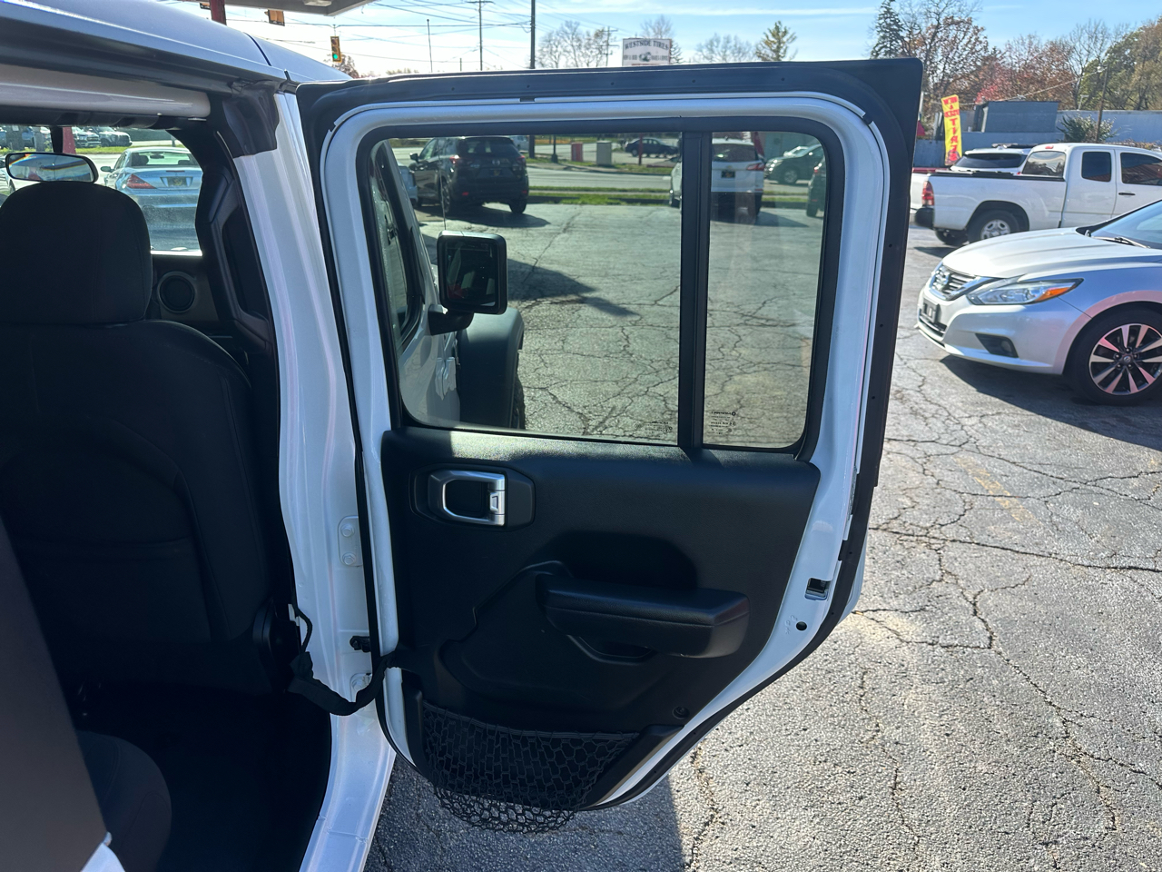 Safety is paramount in the Wrangler Unlimited, with features like the ParkView Back-Up Camera, Dual Stage Driver And Passenger Front Airbags, Rear Child Safety Locks, and Tire Specific Low Tire Pressure Warning keeping you and your passengers protected on every journey.